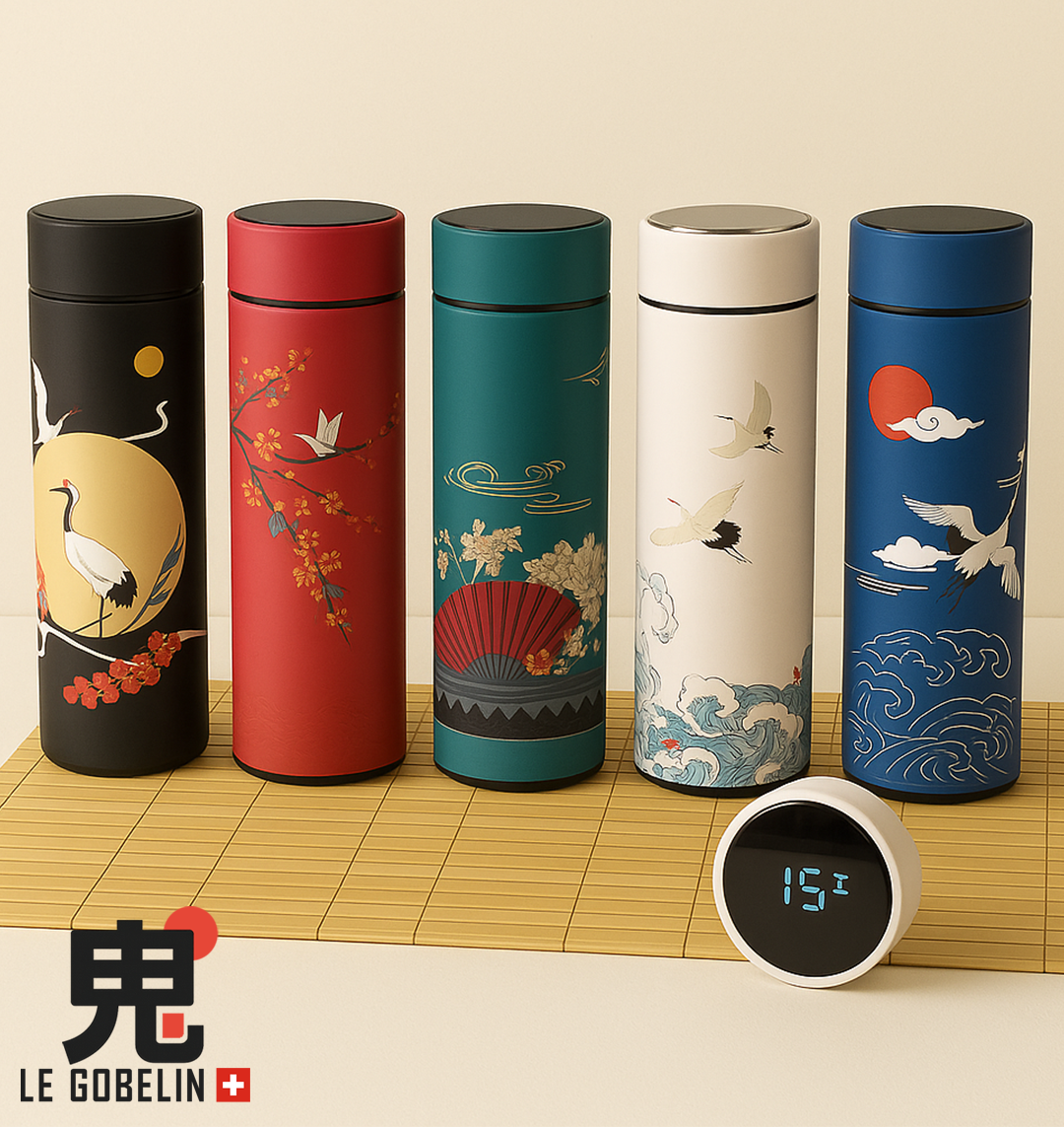 Alliez élégance asiatique et innovation moderne avec une bouteille qui garde votre boisson à la température idéale, où que vous soyez.